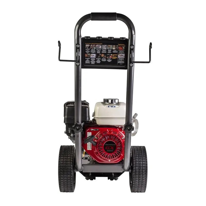 Commercial Honda engine with excellent weight to power ratio. Designed to be used all day, everyday. Direct drive system connects the engine to the pump for a compact and efficient power transfer. Commercial grade compact CAT triplex pump featuring die-cast body, forged brass manifold, ceramic coated plungers and thermal release valve. Built-In unloader effectively regulates water flow in a compact design. Accessories include high-pressure hose, spray gun wand assembly, and spray nozzles so that it can be used right out of the box. Powder coated steel frame with storage for accessories, and 10” flat free tires easily handles going over rough terrain. The actual product may vary from the images shown on the website. |