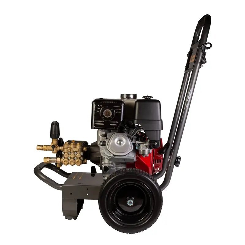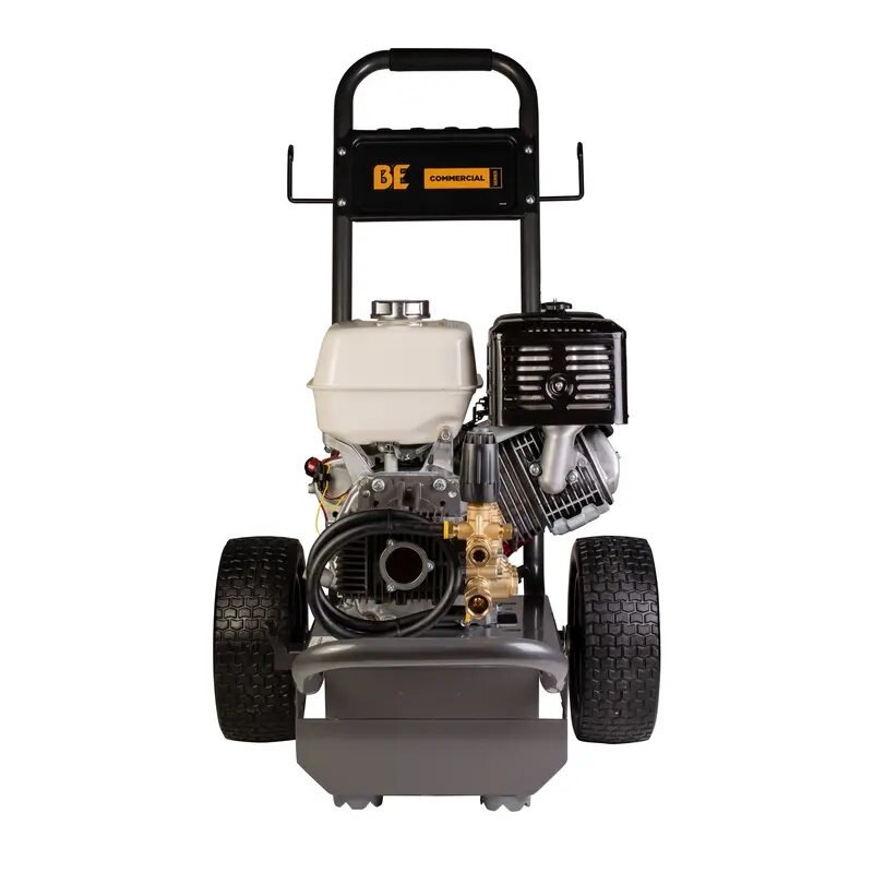 Commercial Honda engine with excellent weight to power ratio. Designed to be used all day, everyday. Direct drive system connects the engine to the pump for a compact and efficient power transfer. Commercial grade Comet triplex pump featuring reinforced body, forged brass manifold, solid ceramic plungers, thermal release valve and improved heat dissipation. External unloader provides enhanced cooling and be set to dump-to-ground bypass water to maximize cooling system. Accessories include high-pressure hose, spray gun wand assembly, and spray nozzles so that it can be used right out of the box. Powder coated steel frame with storage for accessories and 12” flat free tires easily handles going over rough terrain. The actual product may vary from the images shown on the website. |