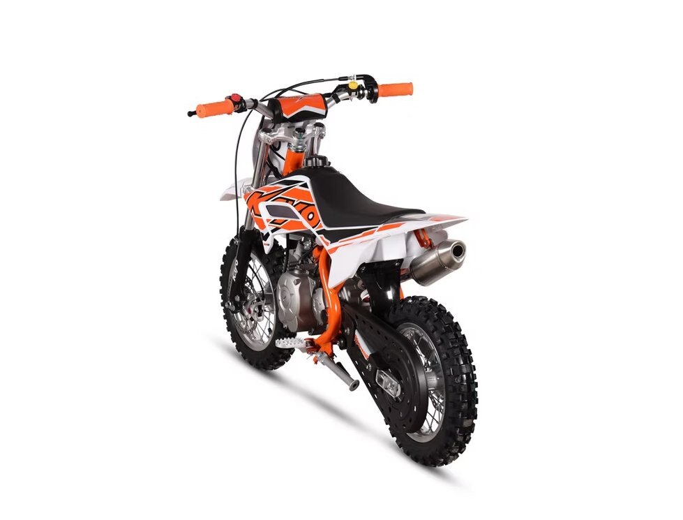 A great beginner bike. With a seat height of only 22 inches, and a total weight just under 93 lbs, this full-auto dirt bike is sure to make it easy for kids learning to ride.