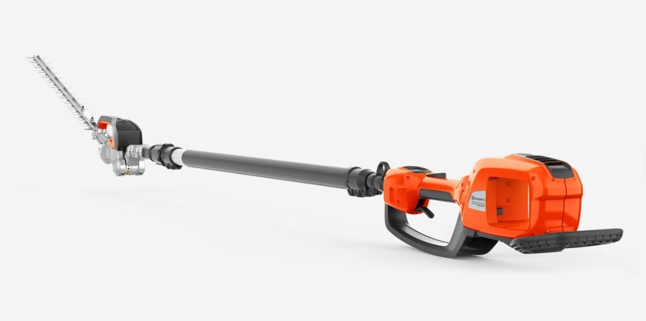 Husqvarna 520iHT4 is a high-capacity battery-powered telescopic pole hedge trimmer with up to 4.5 m reach, designed for professional use. It cuts wide, high and low hedges efficiently thanks to the length adjustable telescopic tube and angle adjustable cutter bar. The cutter bar also folds easily for easier transport and storage. This machine combines market-leading performance with zero direct emissions, low weight, low vibration levels and extremely quiet operation, so you can use it in noise-sensitive environments. The rear impact guard protects the integrated battery to prevent wear and damage effectively. Compatible with all Husqvarna BLi-batteries and chargers. Weatherproof IPX 4.
