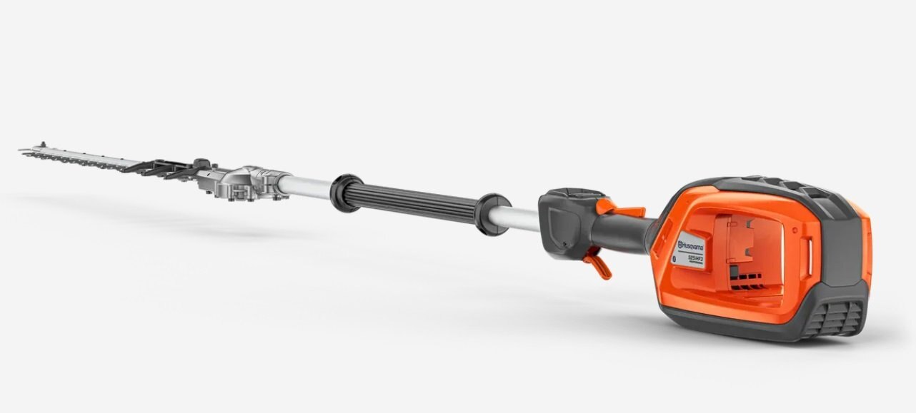Husqvarna 525iHF3 is a high-capacity, battery-powered pole hedge trimmer with up to 3 meters reach, designed for professional use. The 65cm fixed cutter bar, equipped with triple grinded knives, offers high cutting speed for high productivity when cutting high, wide, or low hedges. Well-balanced design, low vibration level, ergonomic handles, and intuitive user interface enable comfortable use during long and demanding working hours. IPX4 standard for all-weather use and an active battery cooling system ensure high uptime. Integrated connectivity for easy connection to digital services such as Husqvarna Fleet Services™. Battery and charger are not included.
