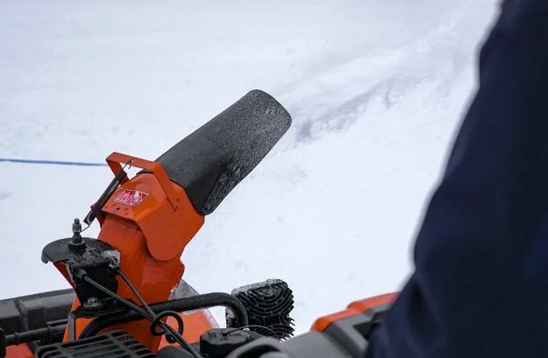Heavy-duty ribbon auger mixes air into snow to help impeller fan churn through frozen or wet snow for a two-stage clearing system |