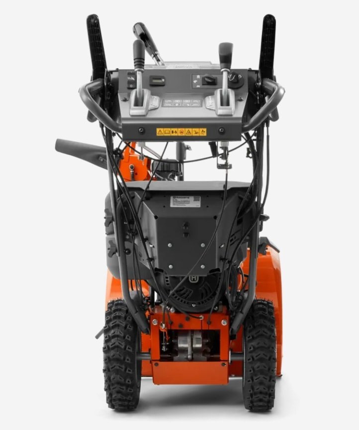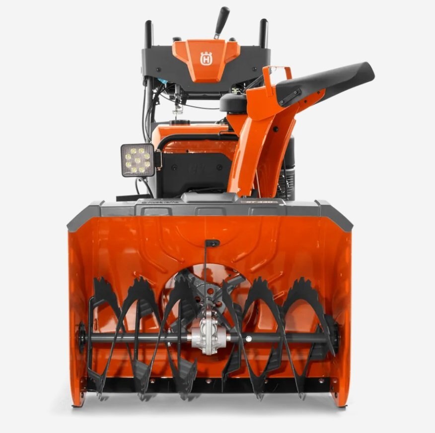 Heavy-duty auger and impeller fan churn through frozen or wet snow with a two-stage clearing system |