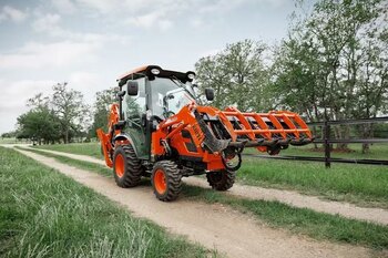 The deluxe factory-installed full size cab with air conditioning and heat allows operators to perform tasks comfortably throughout the year.2024 KIOTI CX2510 HST W/ CAB & LOADER VALVE