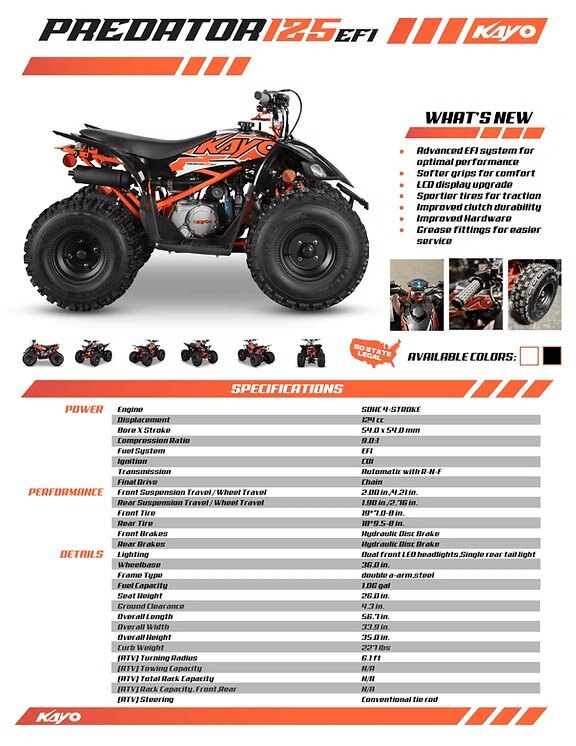 KAYO PREDATOR 125 EFI SPORT ATV—AGES 10+