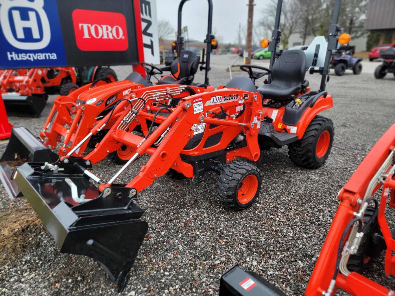 Engine: 24.5 HP 3-cylinder diesel Transmission: 2-range Hydrostatic (HST) Drive Type: 4WD Front Loader: SL2420 loader with quick-attach bucket Loader Lift Capacity: ~1,092 lbs at pivot pin Breakout Force (off ground): ~1,843 lbs Rear PTO: 540 RPM, Independent PTO Mid PTO: ~2,000 RPM (for mid-mount mower or front snowblower) Fuel Tank Capacity: ~6.6 gallons Warranty: Factory Kioti warranty – contact for details |